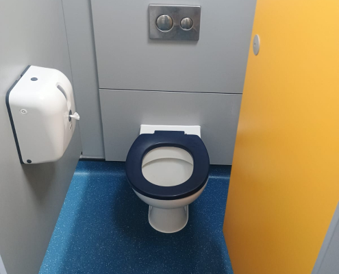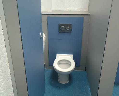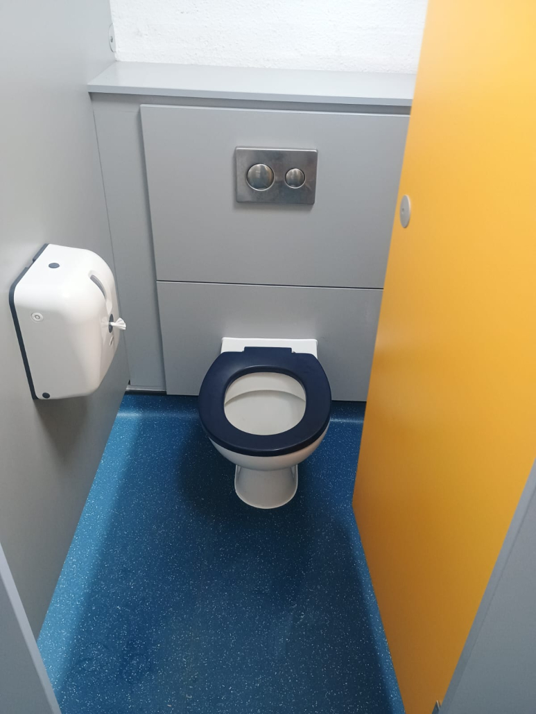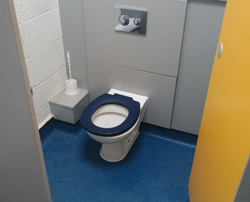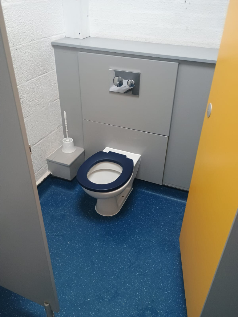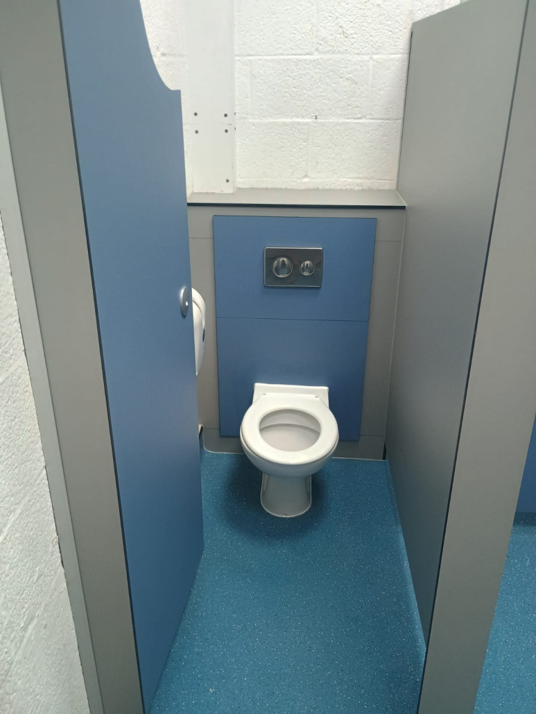 The refurbishment delivered a clean, durable, and safe washroom environment designed to withstand heavy daily use. The new cubicles, flooring system and duct panels provide improved hygiene, simplified maintenance, and a modern aesthetic appropriate for a school setting.