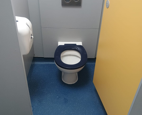 Our team was appointed to undertake the refurbishment of existing WC facilities within a school environment. The objective was to modernise the space by replacing outdated cubicles, flooring, and duct panel systems while ensuring minimal disruption to school operations.