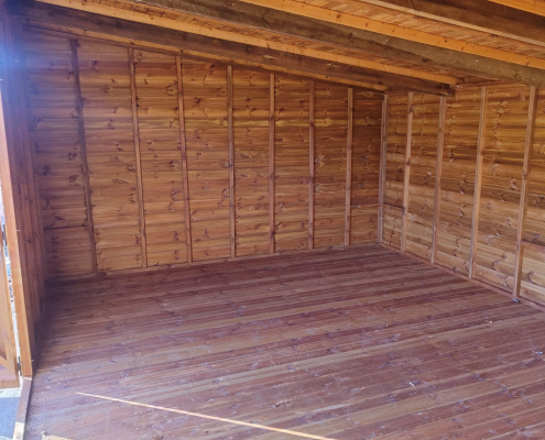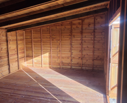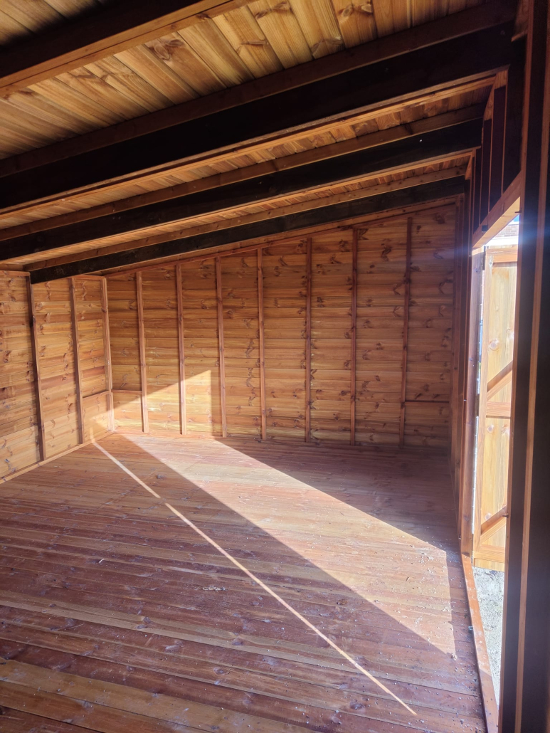 To meet these requirements, we selected a Beast Shed, renowned for combining aesthetic appeal with exceptional durability. Heavy-duty sheds not only enhance the look of an outdoor space but also ensure tools and machinery remain protected from both theft and harsh weather. Beast Sheds stand out in the market thanks to their superior construction: every piece of timber is fully Tanalised for long-lasting resistance to rot and decay; the framework is built from robust 3″ x 2″ planed timber; and the cladding features premium (25mm planed to 20mm finish) tongue-and-groove boards. Their impressive strength has earned them the nickname “Bomb Shelters”, highlighting their ability to withstand demanding conditions and heavy use.